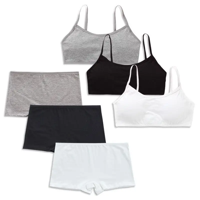 Спецификация: Материал: смесь хлопка Цвет: телесный, черный, серый, розовый, белый Размер: средний размер (ошибка управления: 1-3 см) Обхват груди: 60-78 см Высота бюстгальтера: 25 см Рекомендуемый возраст: 8-14 лет Рекомендуемый рост: 135-155 см Количество: 1 комплект