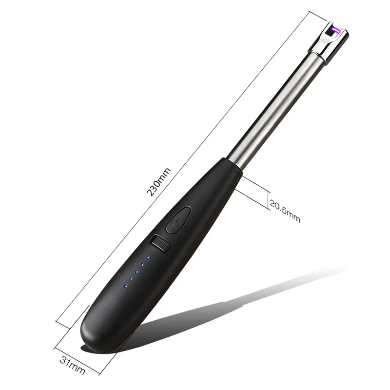 -Индикатор заряда батареи: Зажигалка может отображать оставшийся объем батареи. Когда включается 5 светодиодный индикатор, он полностью заряжен.