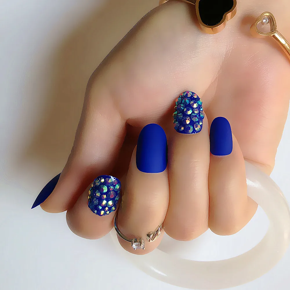 24 шт., модные искусственные ногти для девочек, королевский синий, сделай сам, водяная дрель, дизайн ногтей, советы, уникальный стиль, дизайн, создает короткие лаки для ногтей