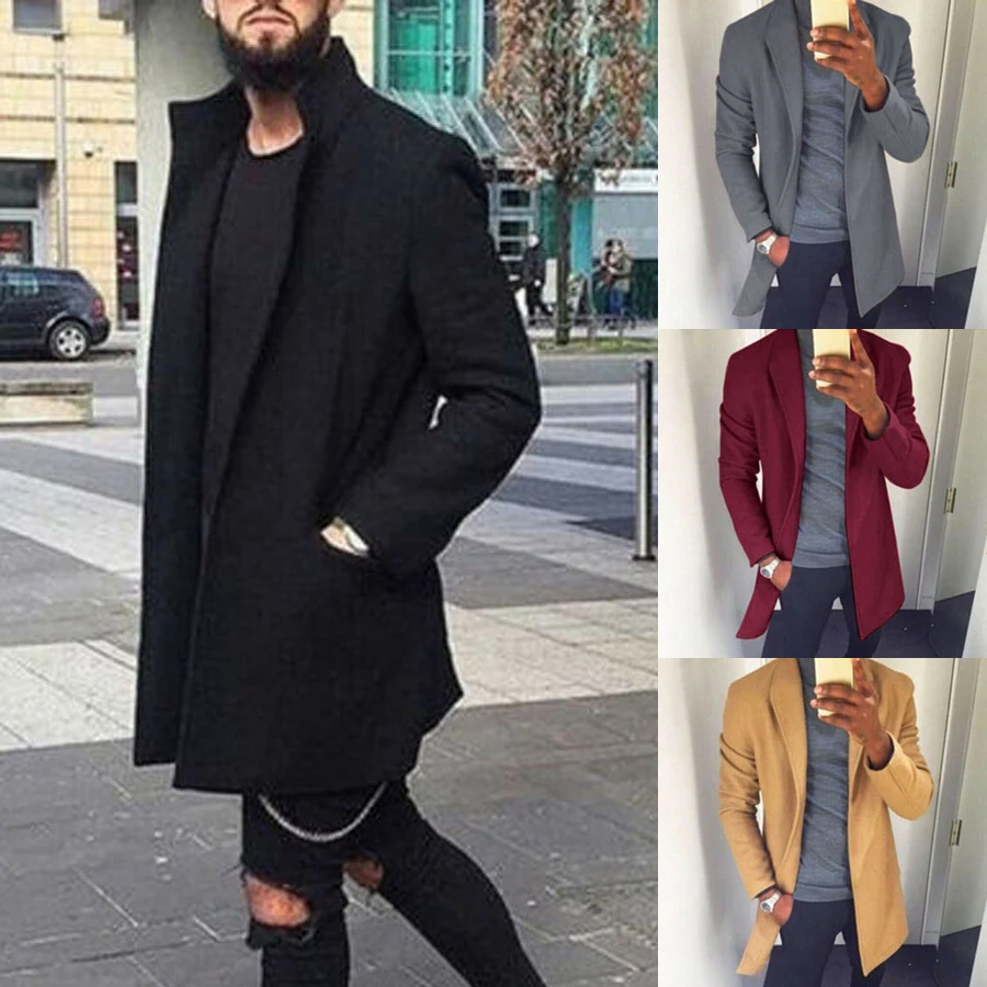 Отзывы о Мужская приталенная куртка пальто Тренч Длинный блейзер верхняя одежда Peacoat