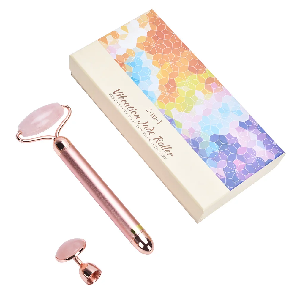 Электрический нефритовый валик Вибрационный роликовый массажер для ухода за лицом 2-в-1 природа розовый кварц уход за кожей лица ролик кожи ролик для глаз