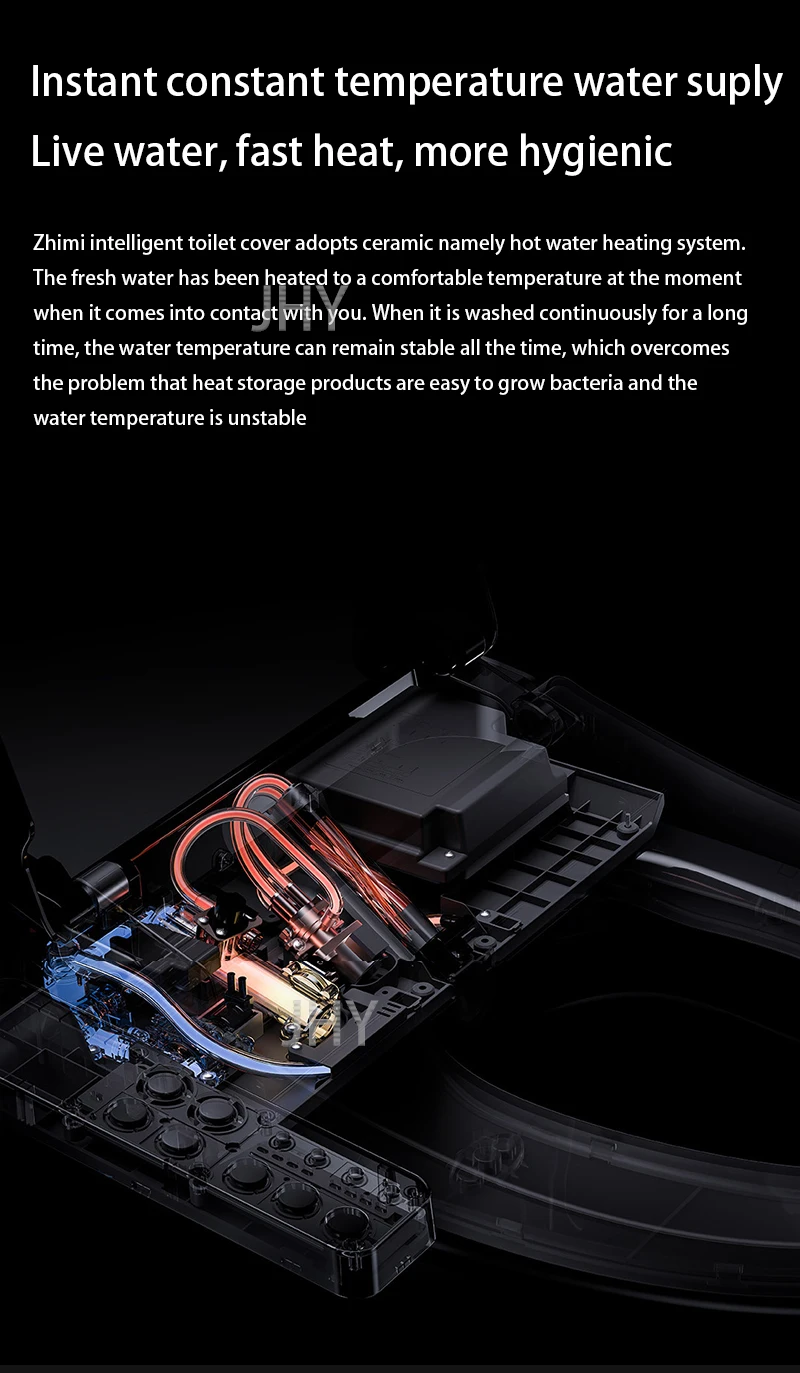 Самоочистка воды/УФ стерилизацияУровень антибактериальности превышает 99% *Перед мойкой кольцевая вода очистит насадку полностью; После выхода из сиденья ультрафиолетовый светильник будет эффективноУстраняют бактерии на насадке. Крышка унитаза Zhimi будет поддерживать себя в чистоте в любое время, чтобы гарантировать, что каждый флеш можетЗащитите свое здоровье.