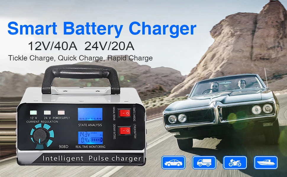Дит модель oplader является специализированным онтвореном en vervaardigd voor 12 V/24 V lood-zuur, droge batterijen, batterijen, lood-zuur onderhoudsvrij batterijen, lithium batterijen. (Емкость аккумулятора: 6-400 Ач) De nominale teartische stroom: 12V-40A (макс.), 24V-20A (макс.). Gelieve zorgen voor de output van de lader is dezelfde spanning als uw batterij. Alleen gebruikt зарядное устройство "ручной ремонт" voor в noodsituaties! MOET worden losgekoppeld na de "Manualrepair"-volledig opgeladen, Anders zal het de batterij beschadigen.