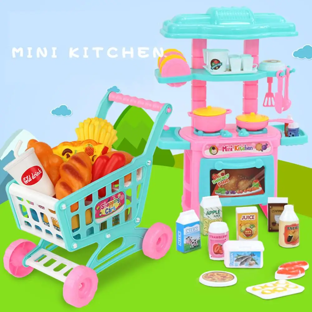 Отзывы о Kids Mini Simulation Tableware Shopping Cart Set Pretend Play Kitchenware Food Toys | Игрушки и хобби