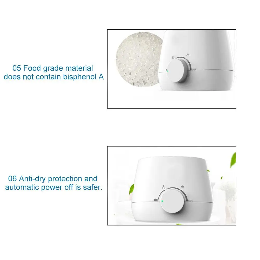 4. Продукты в течение длительного времени при низкой температуре, помещенные в теплое молоко устройство имеет возможность износа. Если вам нужна длительная изоляция, рекомендуется положить теплую воду в бутылку и положить ее в теплую молочную бутылочку для постоянной температуры. Добавьте сухое молоко, чтобы перемешать, когда вы едите.