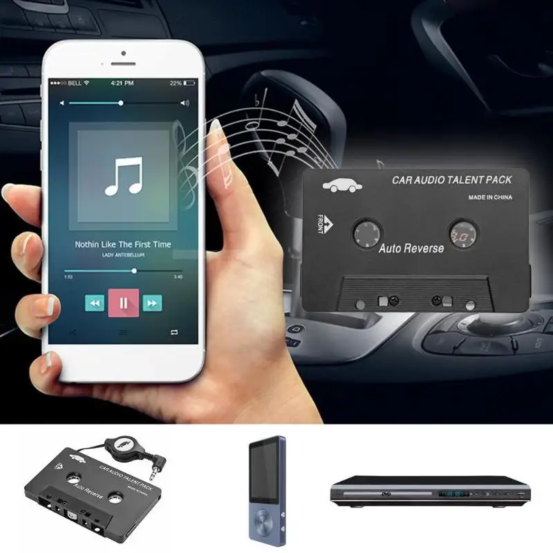 4. Автомобильный MP3 конвертер plug-and-play, так же, как и ленточный конвертер, вставленный в устройство воспроизведения, другой конец подключен к цифровому музыкальному проигрывателю, вы можете слышать замечательную цифровую музыку.