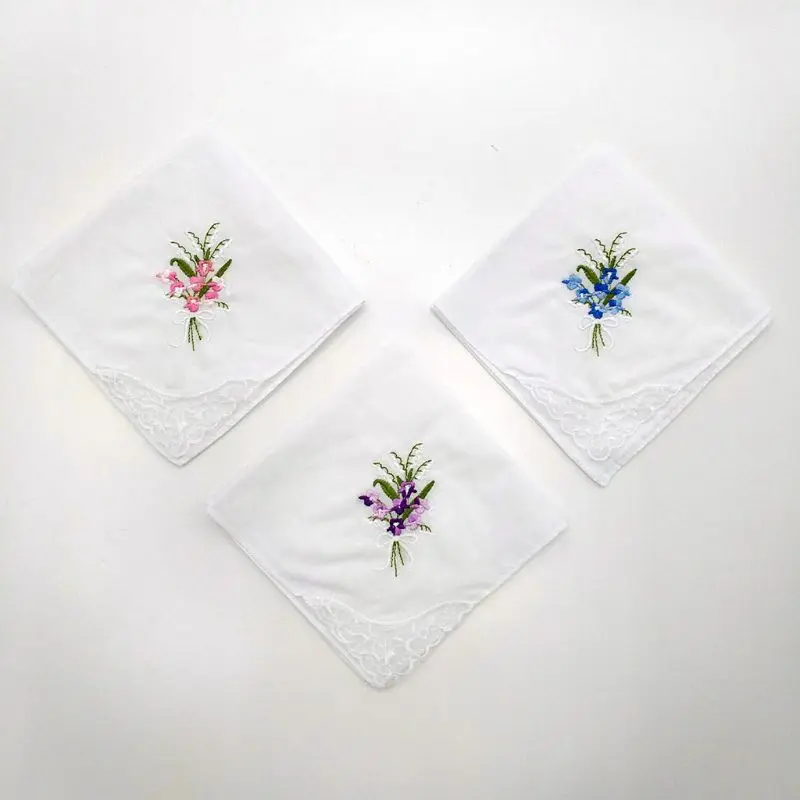 Отзывы о 3 шт./компл. женский базовый белый квадратный носовой платок с цветочной вышивкой