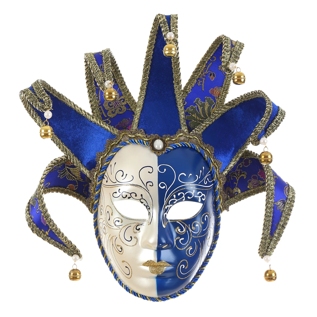 Отзывы о Венецианская маска Jester на все лицо маскарадная синяя белая с колокольчиком