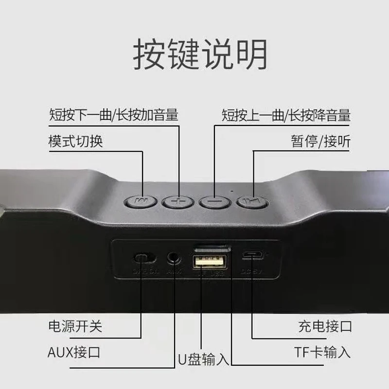 1. Номер модели: T13 2. Связь: Беспроводная 3. Звуковая дорожка: стерео 4. Разъемы: AUX аудио линия 5. Версия BT: Bluetooth V5.0 6. Цвет: черный 7. Время в режиме разговора: около 10 часов 8. Использование: мобильный телефон 9. Питание: 5 Вт * 2 10 видов стилей: Рабочий стол 11. Дальность передачи: 10 метров 12. Время работы музыки: около 4 часов 13. Диапазон частот: 2,4026-2,480 ГГц 14. Мощность зарядки: 5 В, 500 мА или 5 В, 1 А 15. Время зарядки: около 2-3 часов 16. Источник питания аудио: 1500 мАч 17. Место происхождения: Шэньчжэнь, Китай 18. Время в режиме ожидания: около 72 часов 19. Размер изделия: 39,4*6,4*4,85 см 20. Функция: шумоподавление микрофона