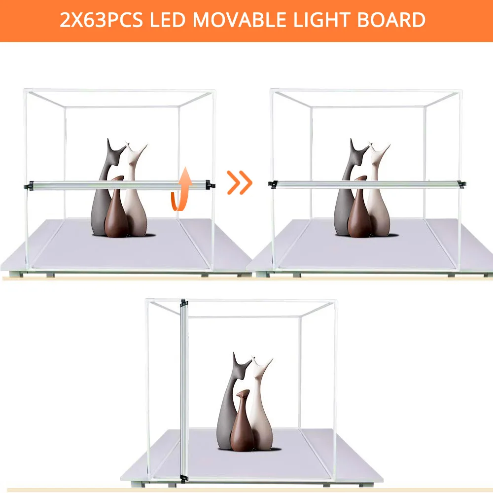 3. Съемка под разными углами: переднее окно поддерживает горизонтальную съемку, а открытое окно сверху поддерживает вертикальную съемку на 90 градусов. Позволяет делать отличные снимки в белом фоне с различными устройствами: iPhone, смартфонами, камерами или профессиональными камерами.