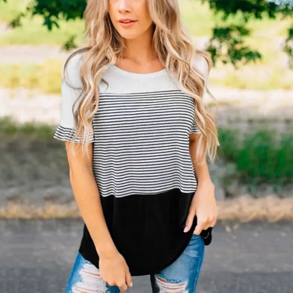 Женская Полосатая футболка с коротким рукавом для кормления грудью