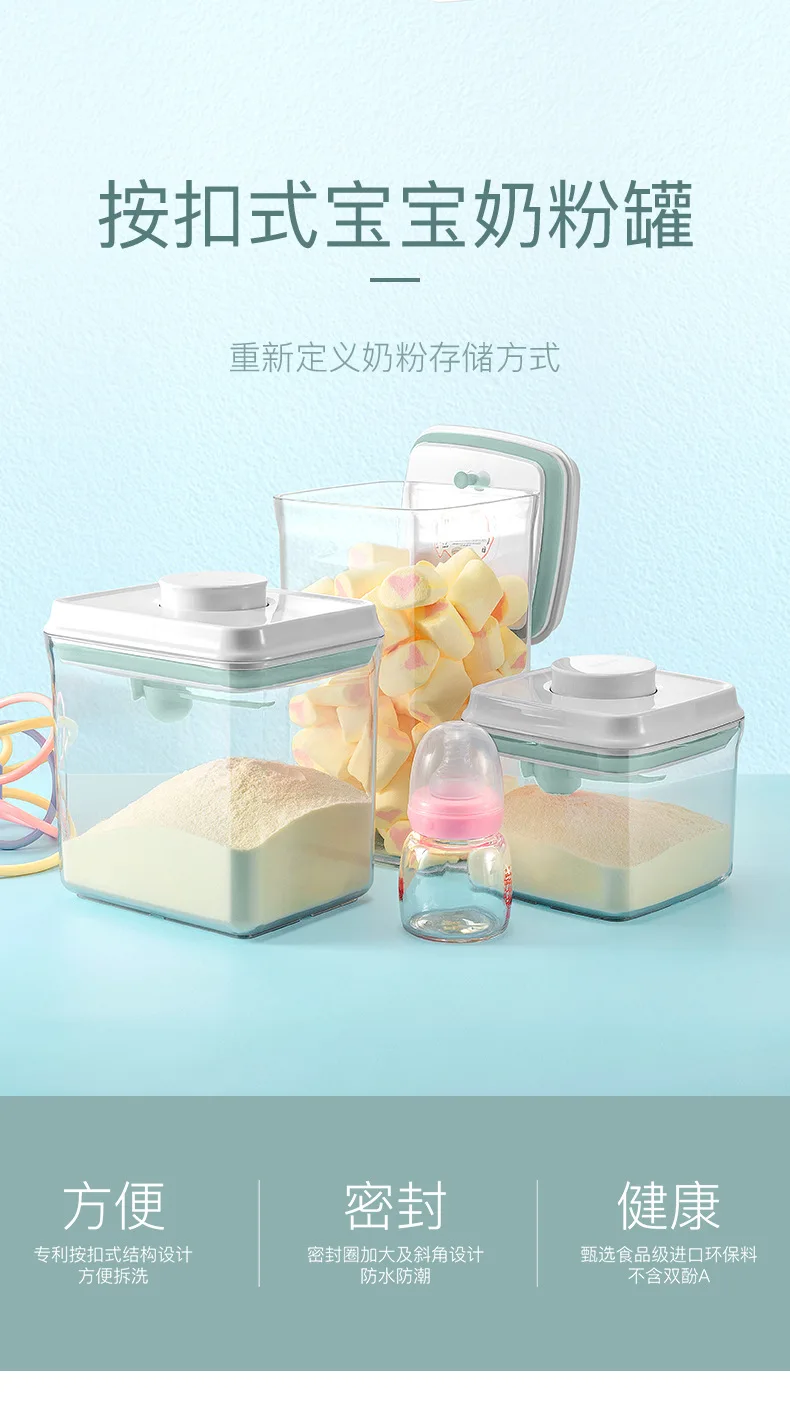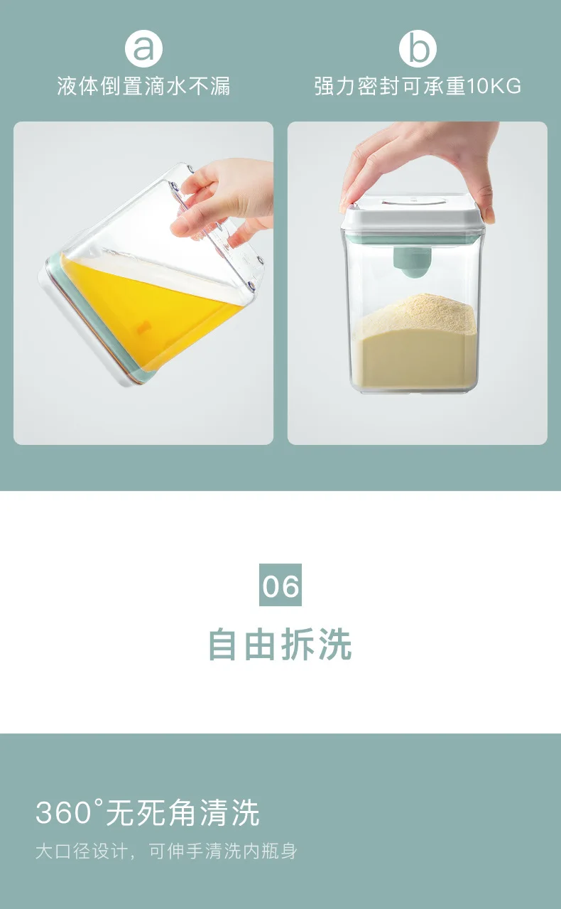 1. Он используется для хранения сухого молока, фруктов, закусок, питательной еды, дополнительных продуктов питания и других продуктов 2. Совок висел на крышке, чтобы избежать прямого контакта с сухим молоком 3. Большое уплотнительное кольцо и конструкция закрытия, чтобы сделать его более герметичным 4. Есть в нескольких спецификациях на выбор 700 мл-2300 мл