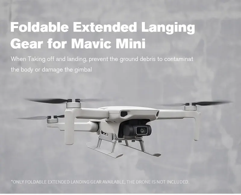 #Effectively improve the drone's ability to adapt to the ground environment during take-off and landing; avoid ground debris to less contamination or damage to the lens filter. #Features a quick-release foldable design, quick installation; no need to be removed when the drone is folded and stored, which is convenient and practical. #Only 10g weight and does not affect flight performance.