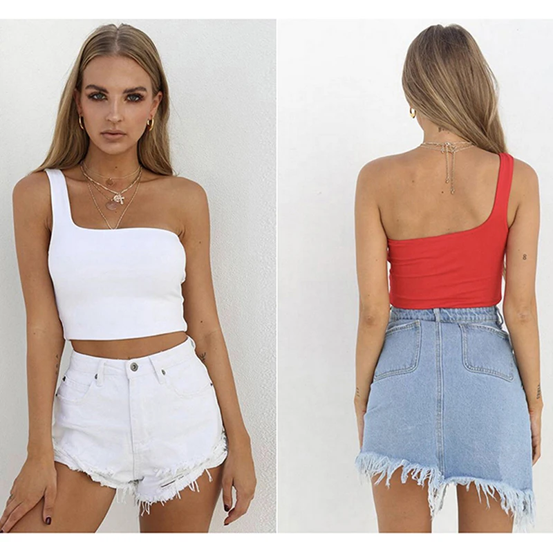 Отзывы о Solid Color Female Camisole Tops Summer Cami Women Cropped One Shoulder Chest Wrapped Short Vest Sexy Nightclub Ladies | Женская одежда