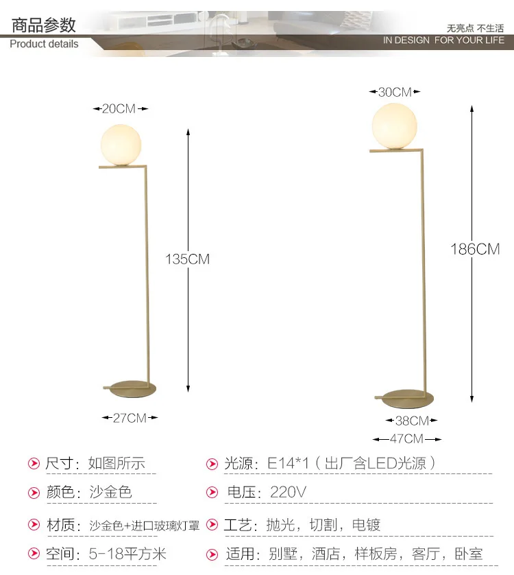 Отзывы о Северная Европа Золотой торшер Минимальный круг стеклянная сфера Гостиная