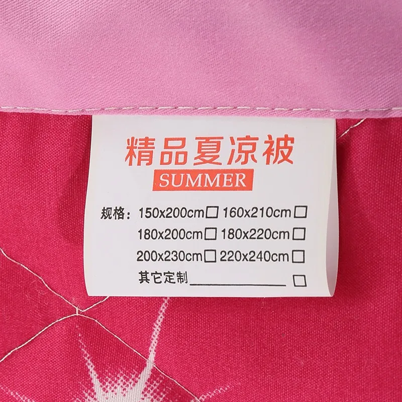 Размер: 150x200 см (58x79 дюймов) Материал: рисунок сбоку-100% полиэстер. Сплошной цвет-внутри 100% хлопок Наполнитель: шелк Вес: около 1 кг Характеристики: легкий, тонкий Сезон: лето