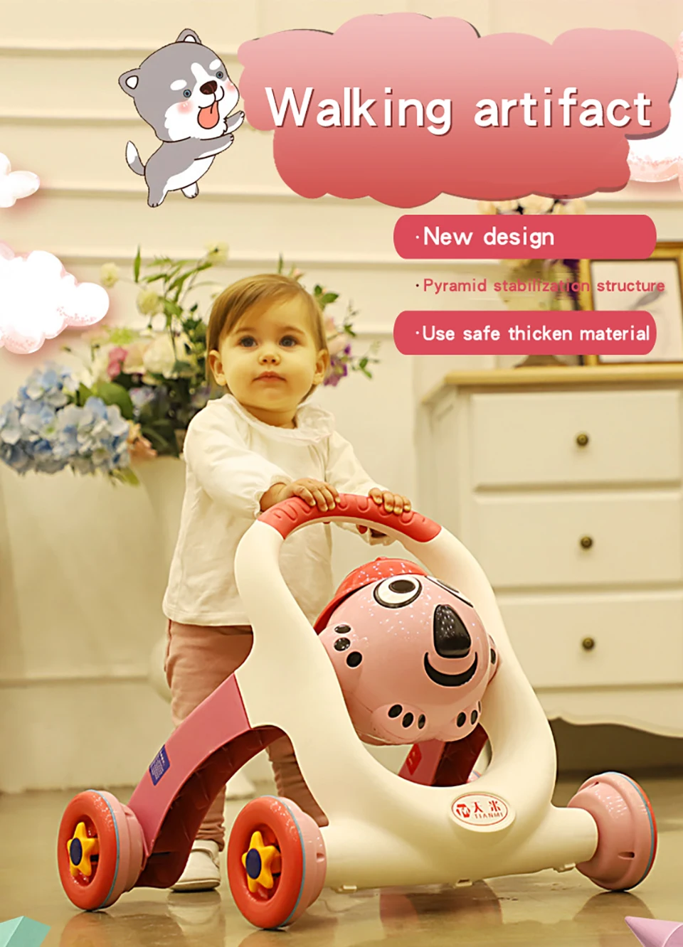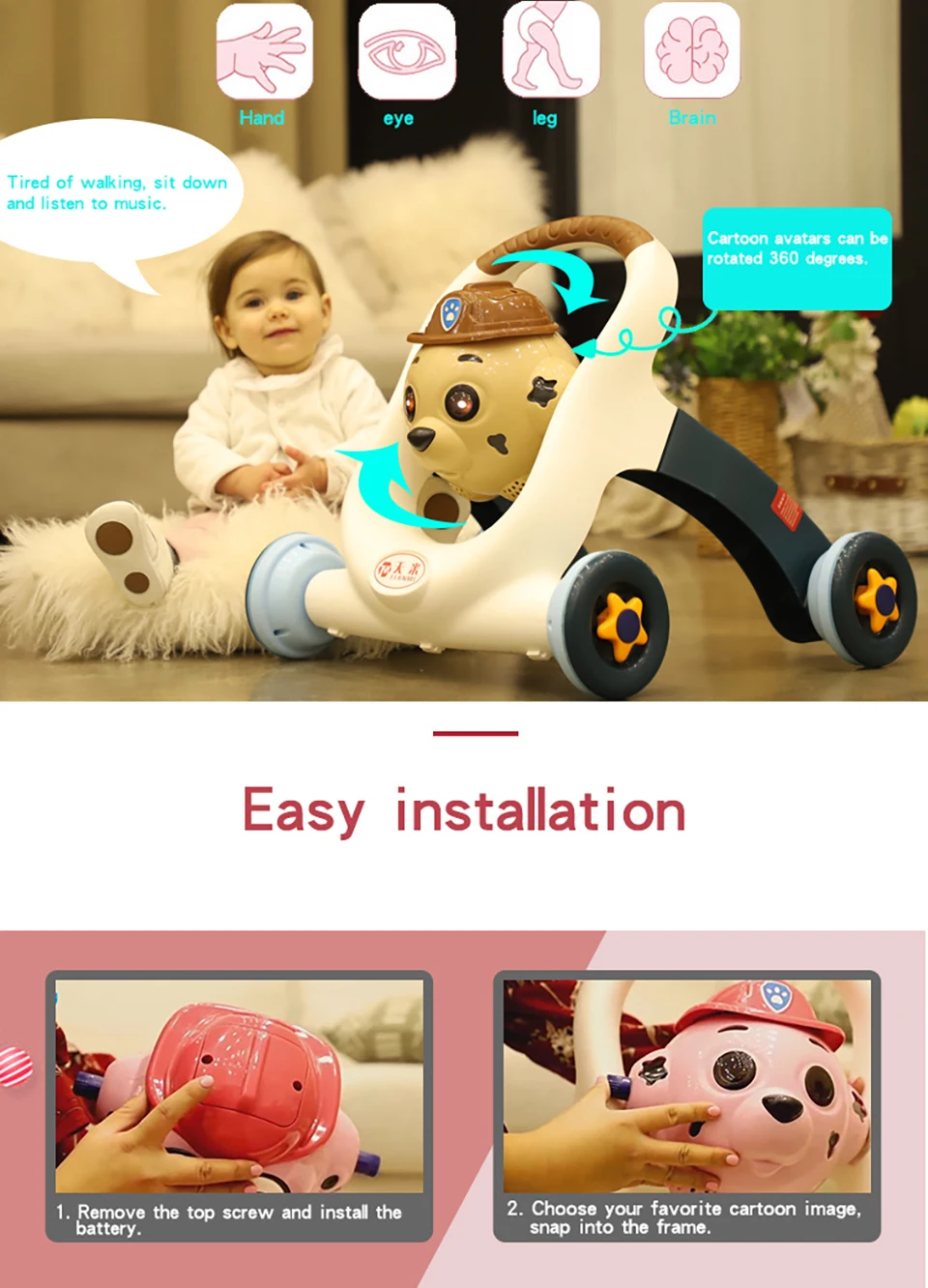 Отзывы о Детские ходунки с колесами Andador музыкой для детей 6-18 месяцев многофункциональная