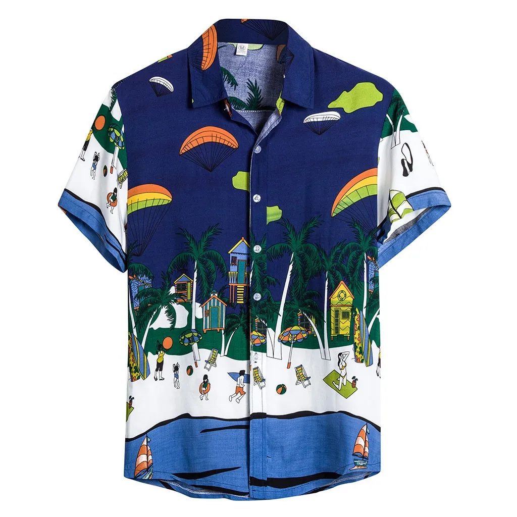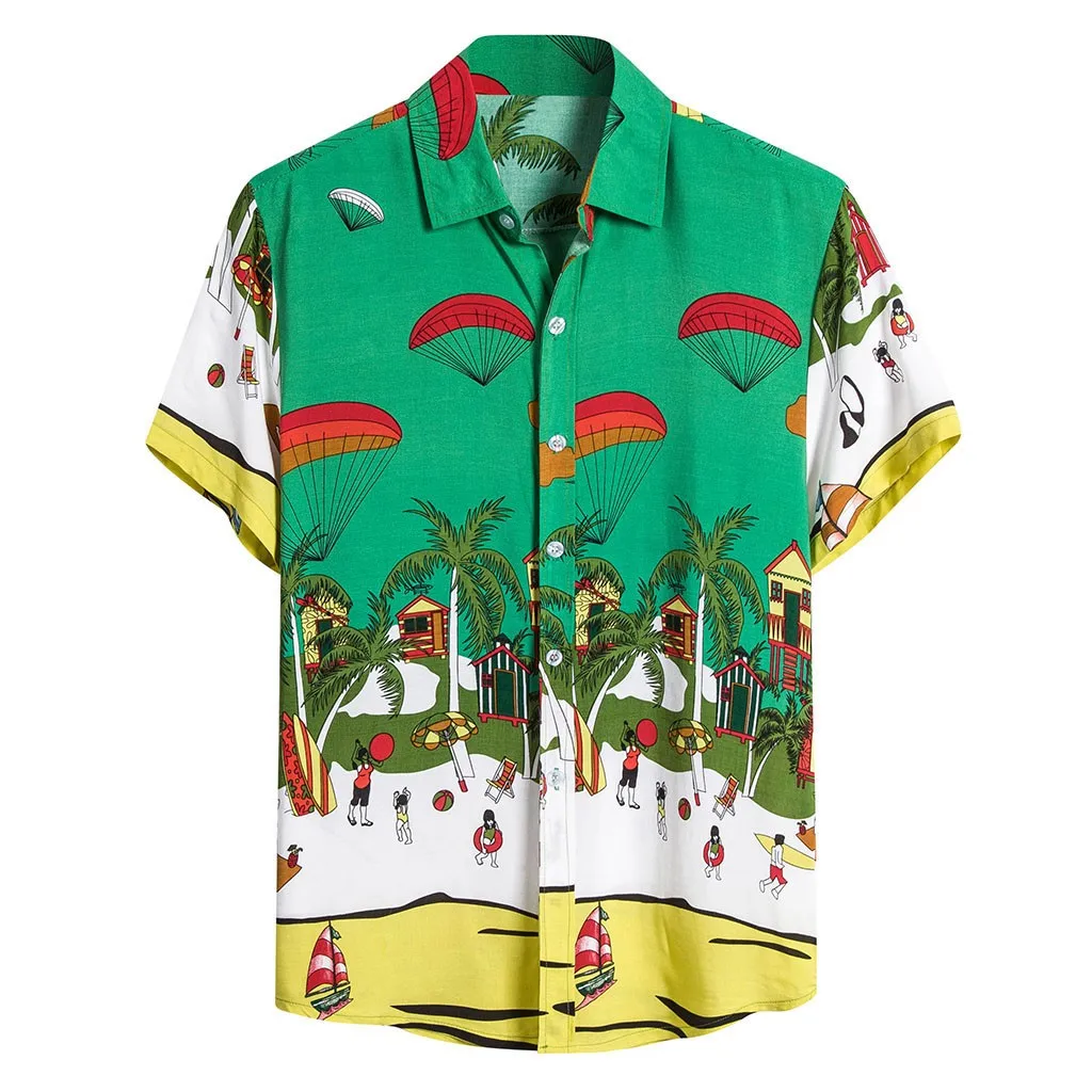 Мужская Этническая Повседневная хлопковая льняная гавайская рубашка с коротким рукавом и принтом