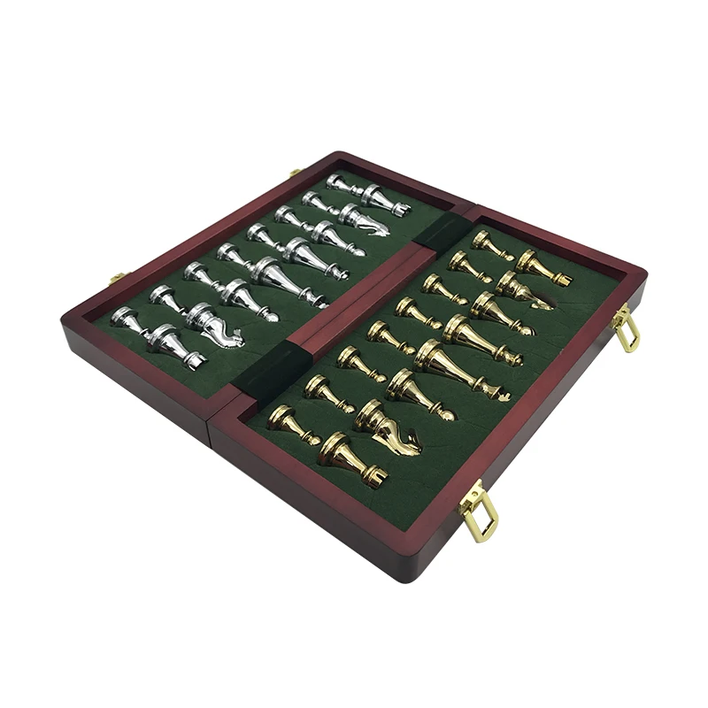 Новая развлекательная деревянная складная шахматная доска, отличные ретро металлические Литые шахматы, набор шахматных игр, Высококачественная шахматная доска