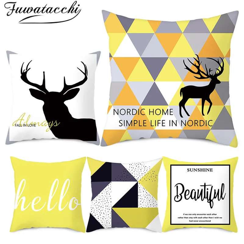 Отзывы о Fuwatacchi мультфильм подушки с оленями чехол геометрическим узором Чехлы для