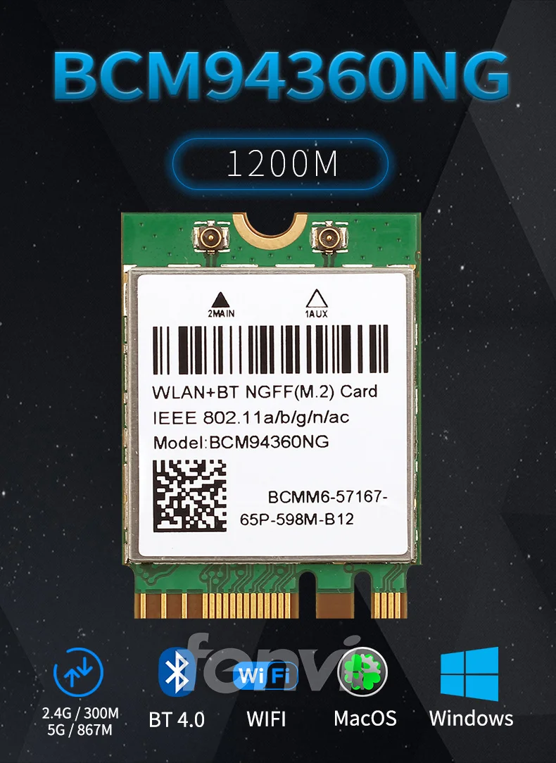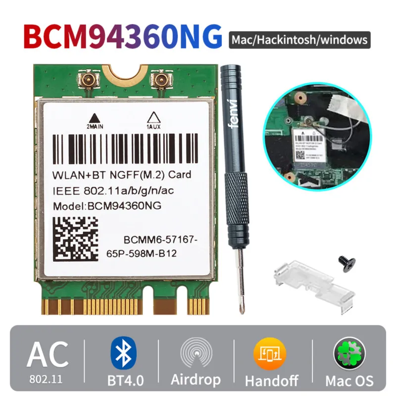 Отзывы о Двухдиапазонная Wi-Fi-карта Hackintosh macOS BCM94360NG M.2 1200 Мбит/с 5 ГГц Bluetooth 4 0 802.11ac адаптер