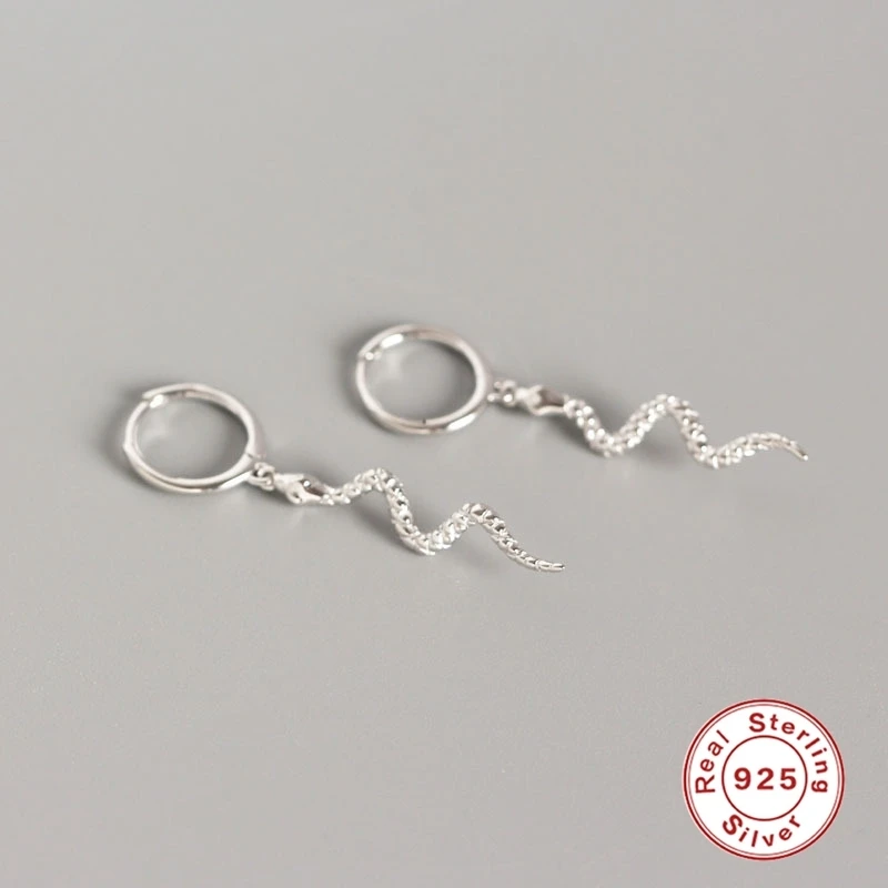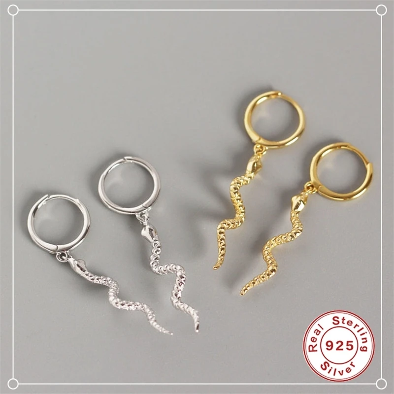 Серьги-гвоздики из 100% стерлингового серебра 925 пробы, модные длинные серпантиновые серьги-гвоздики с кисточками в виде змеи для женщин, серьги с животными в стиле панк