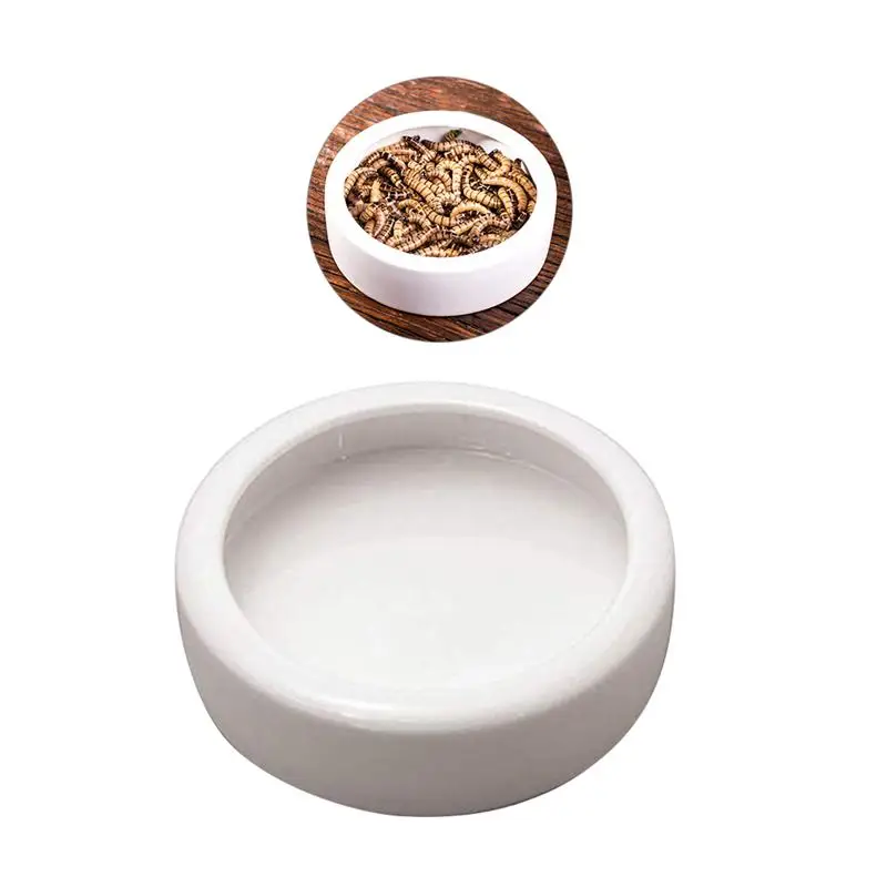 Гусеничный ползать керамики Еда бассейна креветка, еда Еда круглые блюда для домашних животных анти-побег с принтом «маленькие рыбки» кормушки рептилий фидер