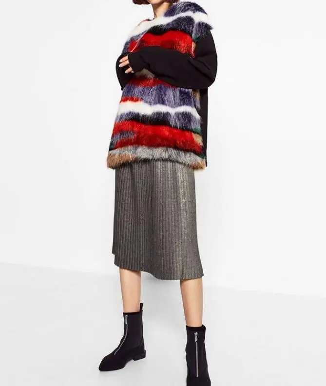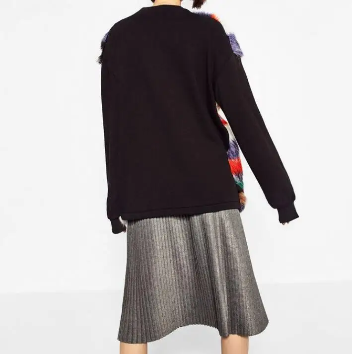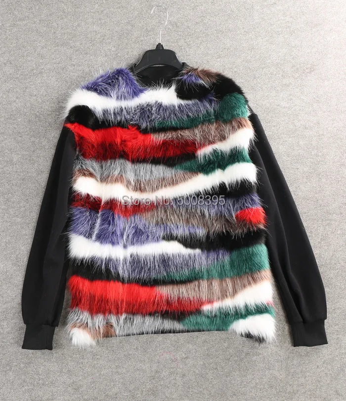 Отзывы о Женские Модные Разноцветные полосатые искусственные пуловеры свитер с мехом