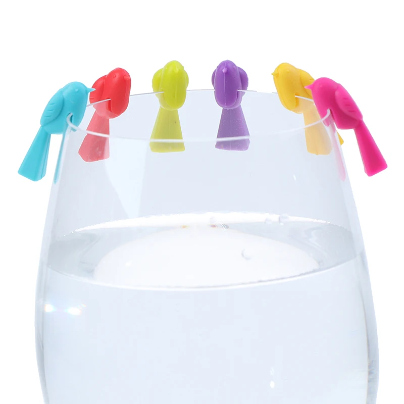 Отзывы о 6 шт (смешанный цвет) Силиконовая птица Tits Wine Glass Mark Recognizer Cup distigrier|Принадлежности
