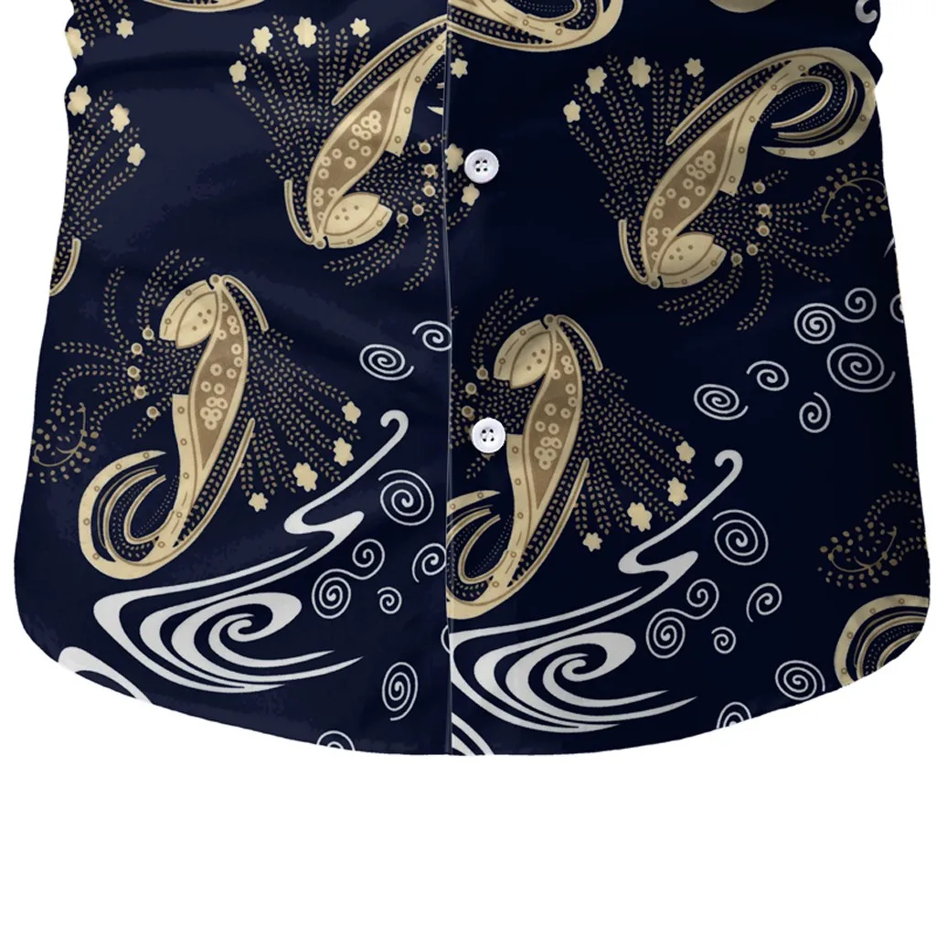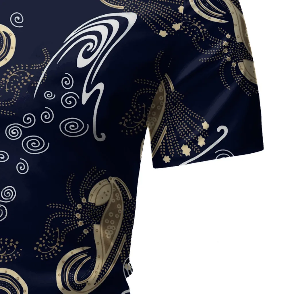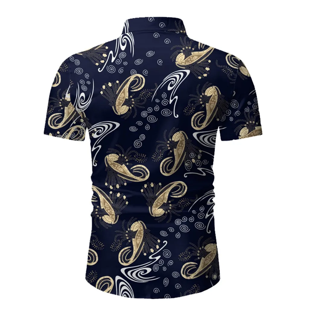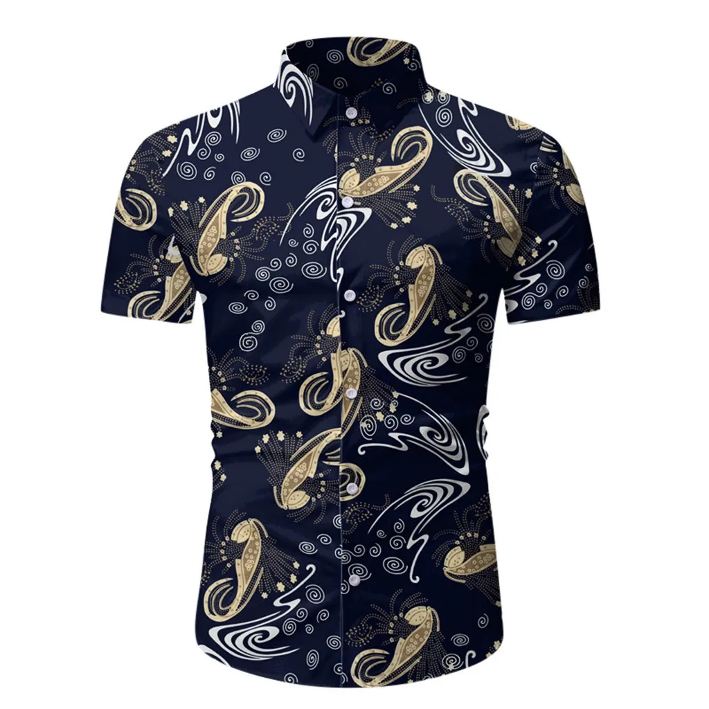 Мужская Повседневная летняя Гавайская футболка на пуговицах с принтом и коротким рукавом, топ, блузка