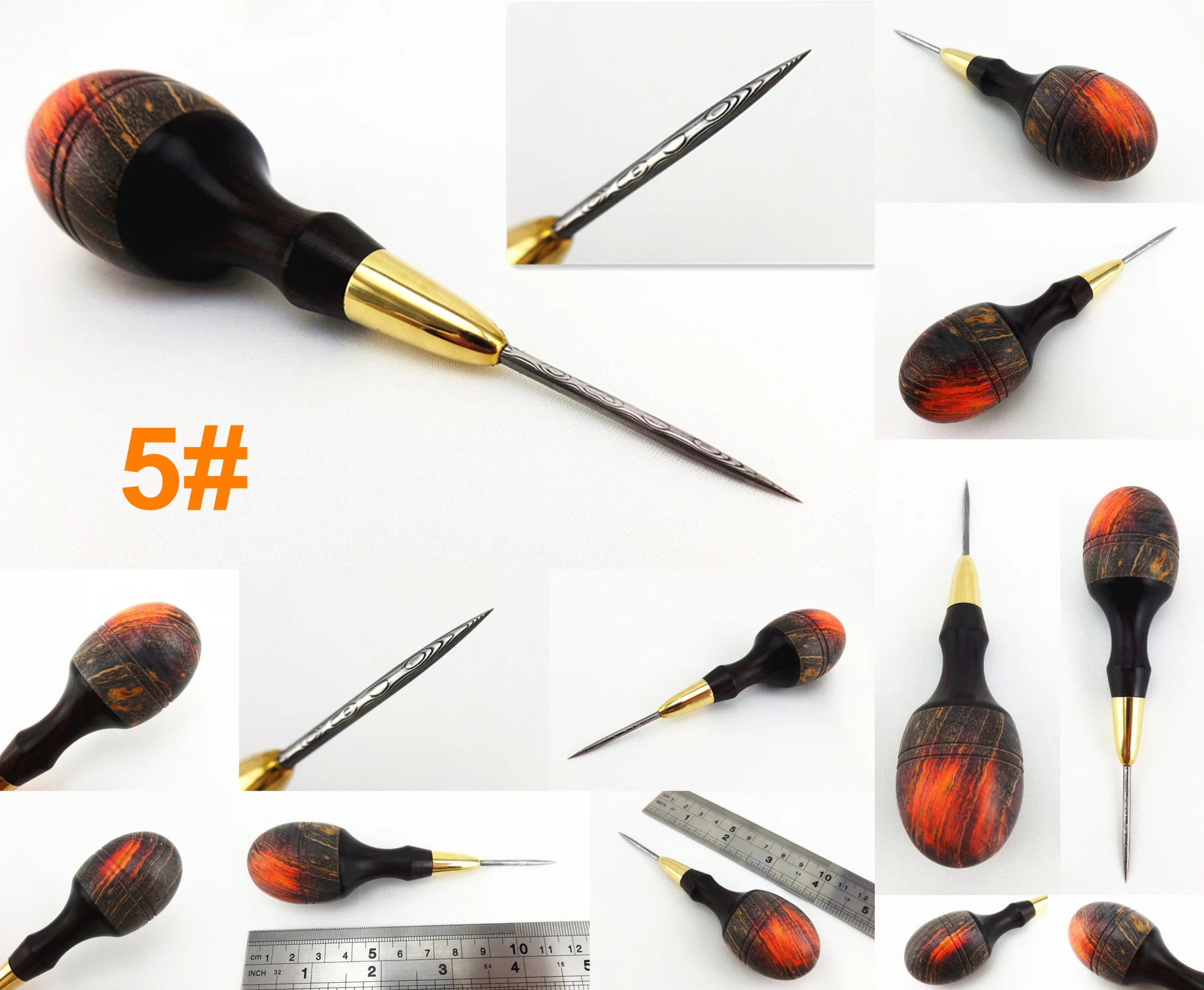 Кожа ремесло швейцарская Дамасская сталь цветная деревянная ручка Круглый Инструмент Awl