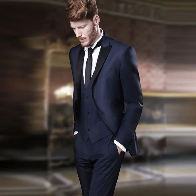 Отзывы о Последняя Темно-синие Для мужчин свадебные костюмы с остроконечным лацканом