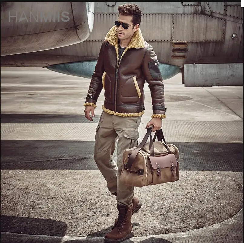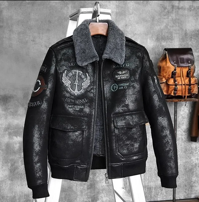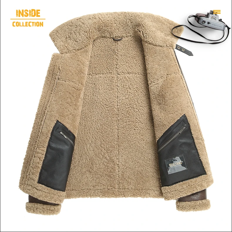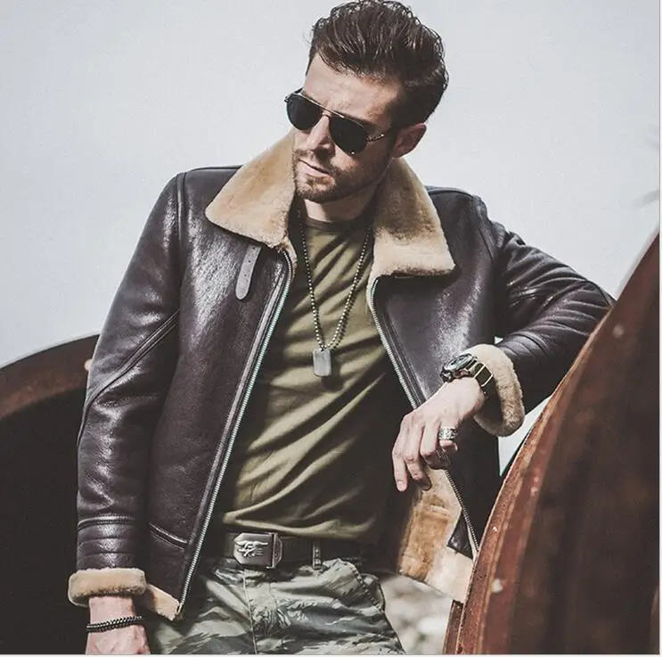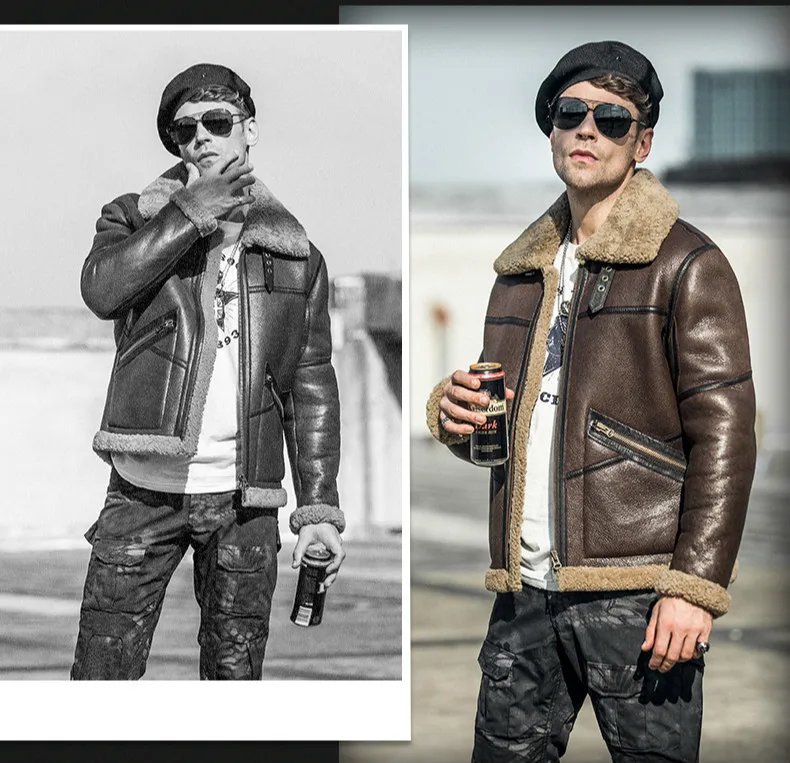 Высококачественная Мужская зимняя куртка из натуральной кожи, мужская куртка из овчины, кожаная куртка для пилота, зимнее кожаное пальто для мужчин