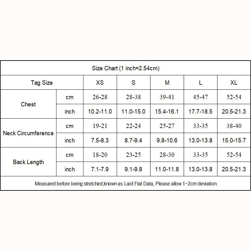 * Tag Size: XS~XL,please make sure that these actual measurements will fit your pet.