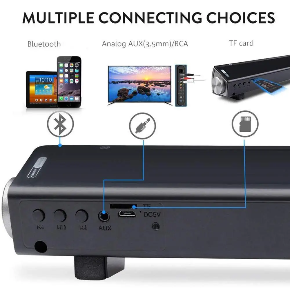 10W Bluetooth Sound Bar,Wired and Wireless Home Theater Audio for Cell Phone/Tablet/Projector and Support TV with AUX/RCA Output (Remote Control Included)