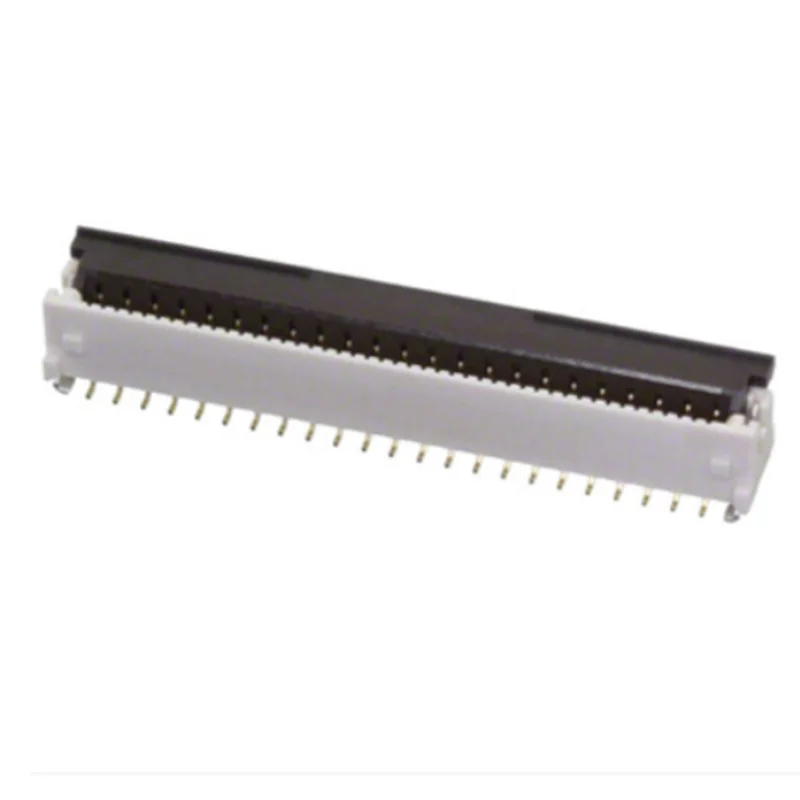 Manufacturer: Molex Product Category: FFC & FPC Connectors Product: Board Mount Number of Positions: 45 Position Pitch: 0.5 mm Termination Style: SMD/SMT Mounting Angle: Vertical Contact Plating: Gold Current Rating: 400 mA Series: 501951 Minimum Operating Temperature: - 25 C Maximum Operating Temperature: + 85 C Packaging: Cut Tape Packaging: MouseReel Packaging: Reel Housing Material: Thermoplastic (TP) Voltage Rating: 50 VAC/DC Brand: Molex Contact Material: Gold Flammability Rating: UL 94 V-0 Mounting Style: SMD/SMT Product Type: FFC & FPC Connectors Factory Pack Quantity: 2000 Subcategory: FFC & FPC Connectors Tradename: Easy-On Part # Aliases: 5019514510 Unit Weight: 0.018586 oz