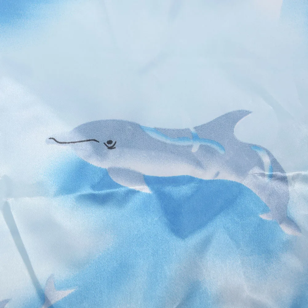 Узор: вишня, зеленые листья, дельфин, разноцветный круг, желтая бабочка, белая бабочка, ветряные мельницы, фиолетовые листья