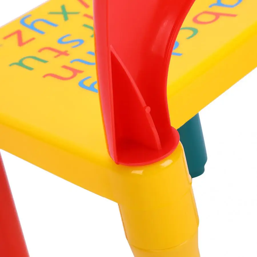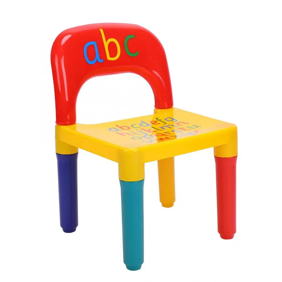 * С красочным алфавитом, напечатанным на стуле и столе