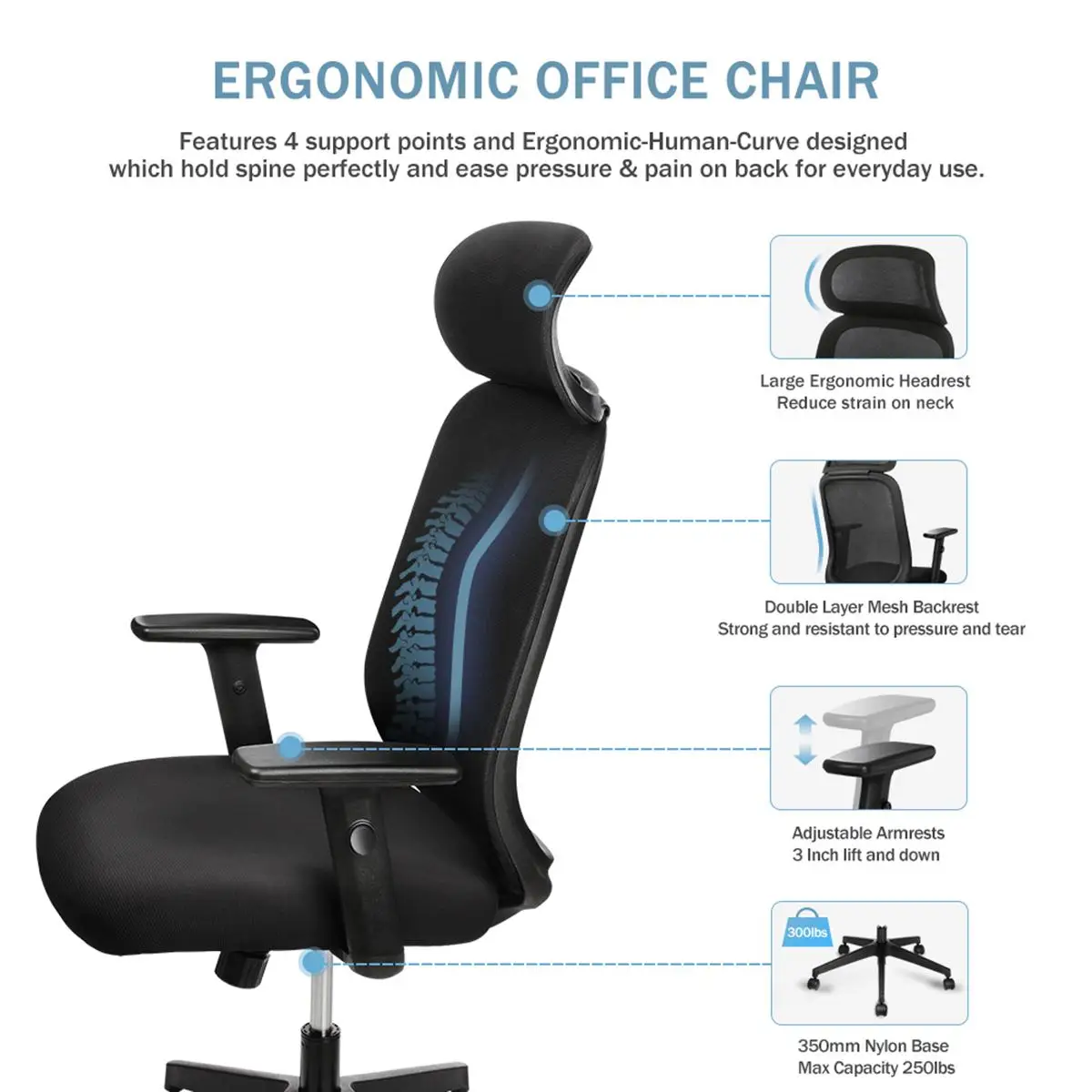· 【Эргономичный и удобный-это Сетчатое с высокой спинкой офисное кресло было вдохновлено милой пандой. Эргономичный дизайн, который отлично удерживает позвоночник и облегчает давление и боль в спине и пояснице для повседневного использования. Полноразмерный подголовник плотно разработан для вашего отдыха, обеспечивает индивидуальный рельеф шеи и поддержку головы, особенно в положении лежа.