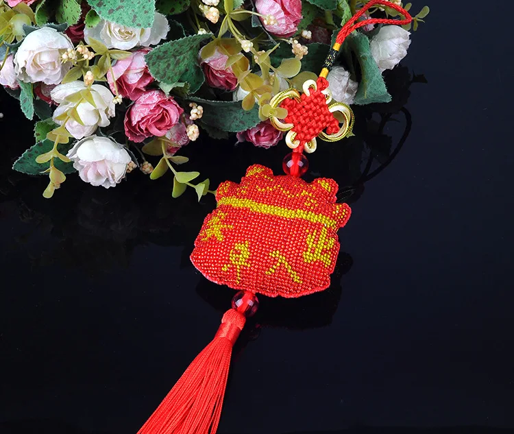 1. Вышитая ткань 2. Китайский узел + шип 1