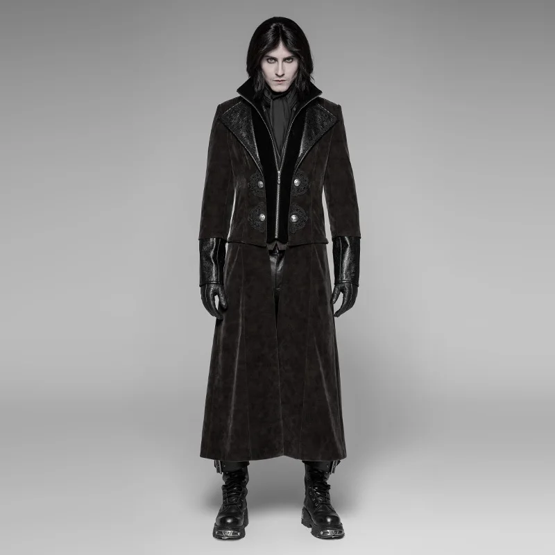 Мужская длинная куртка из искусственной кожи в стиле панк, черная Съемная куртка в стиле джентльмена в стиле панк, WY-908XCM