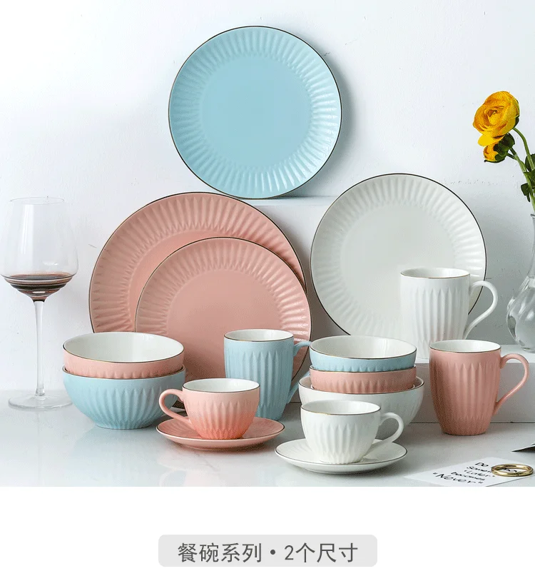 Элегантная керамическая тарелка с золотым ободком, чаша для обеда, рисовый салат, чаша с фруктами, лапша, суп, стейк, кофейная чашка, столовый сервиз