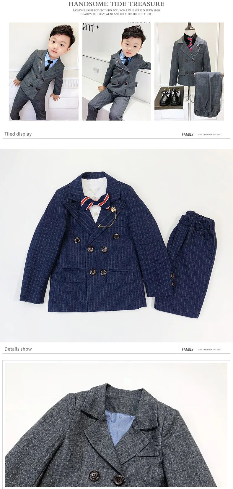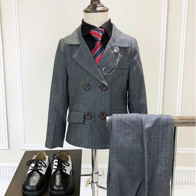 Отзывы о Новая стильная детская одежда для мальчиков 3-8 лет двубортный Детский костюм из 2
