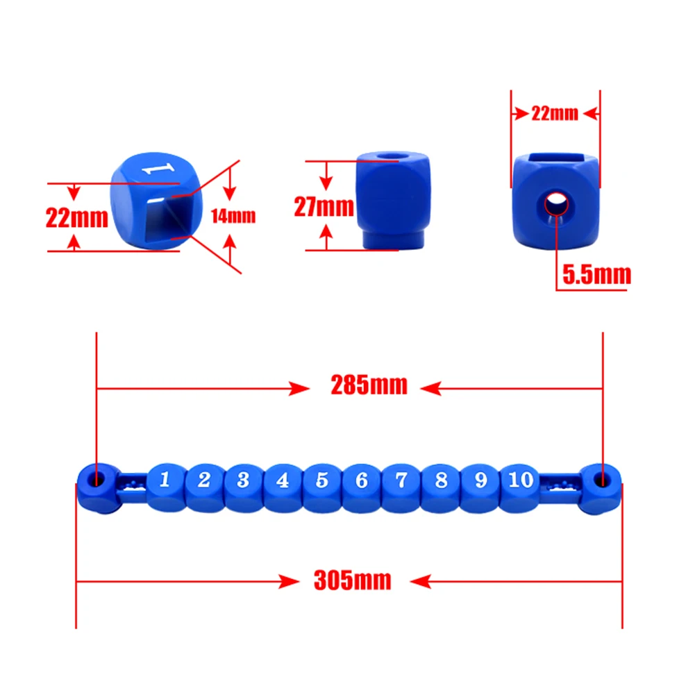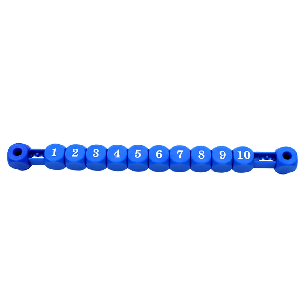 Стержень удерживает пластиковые клинья, пронумерованные от 1 до 10.