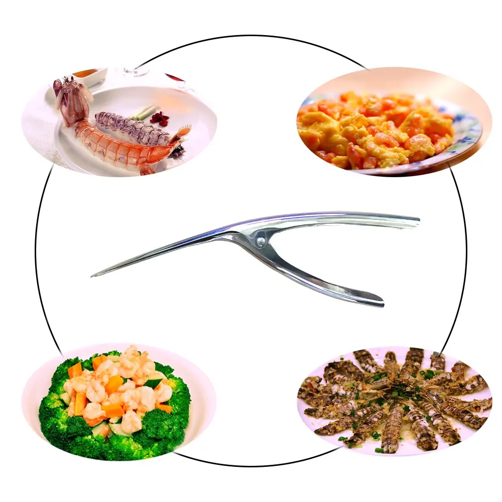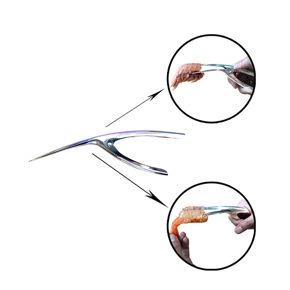 Usage:To peel prawns/shrimps, firstly remove the head. Then hold the handle of the peeler and insert the sharp tip of the tool from the body slowly to the tail of the shrimps/prawns. Finally press the handle of the tool to easily separate the shell from shrimps/prawns. The tool is Perfect for cooked shrimps/prawns.