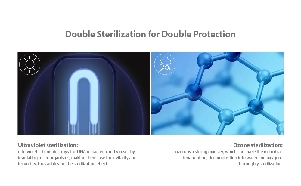 1. Озоновая двойная ультрафиолетовая дезинфекция, 360 градусов Комплексная стерилизация.