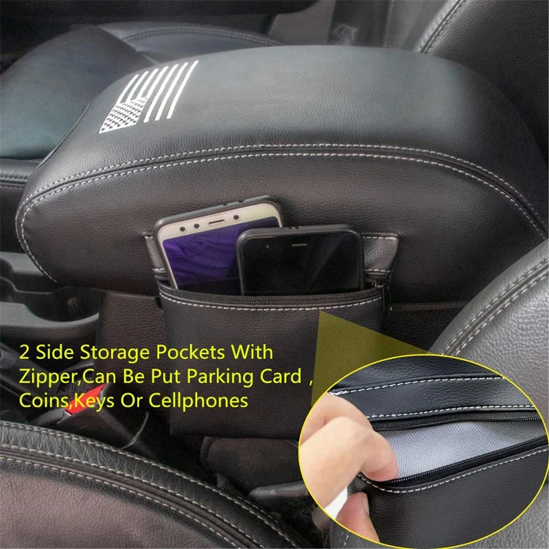 4. Преимущество: отсеки для хранения на молнии с обеих сторон крышки коробки подлокотника, увеличение места для хранения для сбора парковочных карт, мобильных телефонов, ключей или чего-то маленького для удобного хранения и хранения.