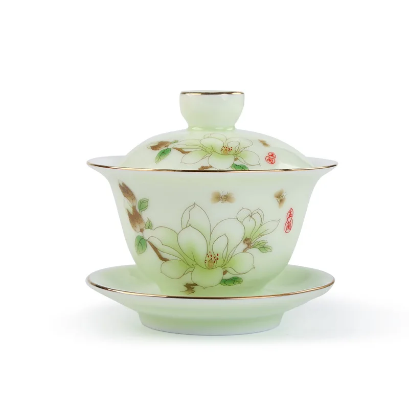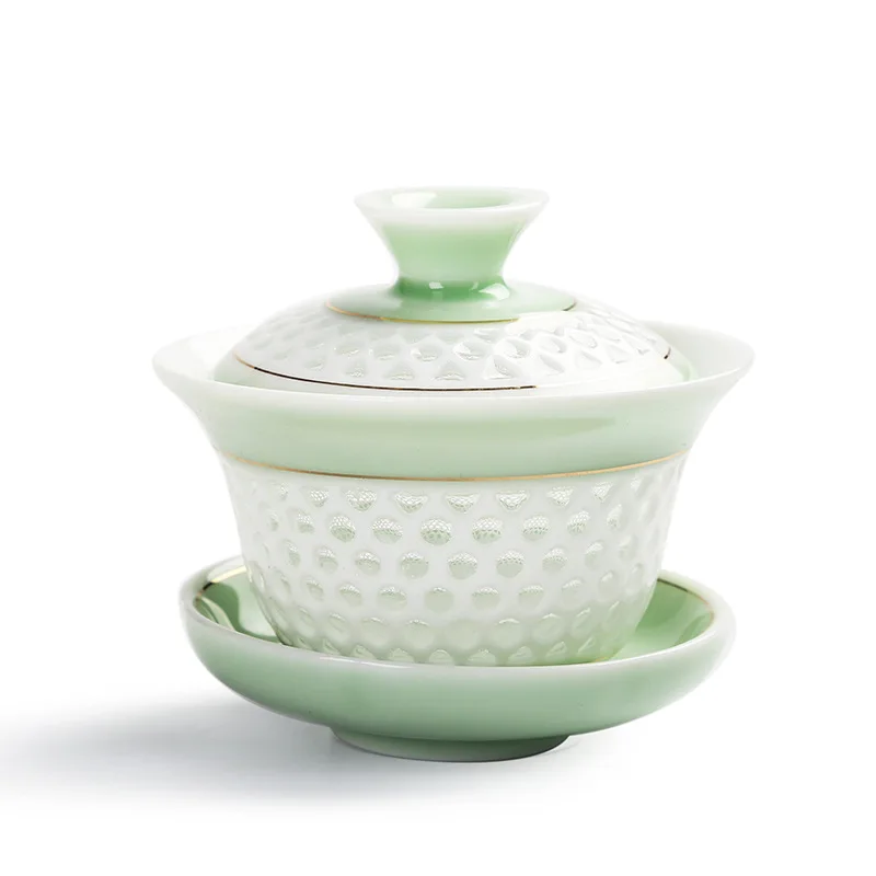 Отзывы о Керамический сине-белый чайный набор из трех предметов фарфоровый с тонкими
