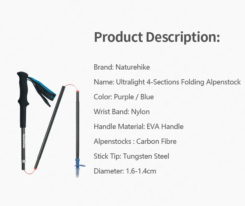 Отзывы о Палка для ходьбы Naturehike 4 секции углеродное волокно 150-170 г складная легкая