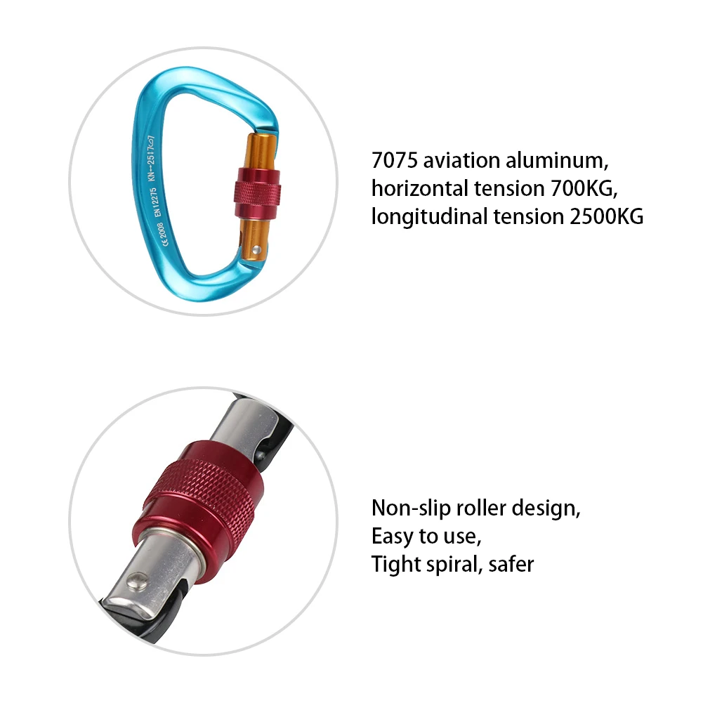 25KN скалолазание карабин d-образный защитный главный винтовой замок безопасная Пряжка Escalade Equipement